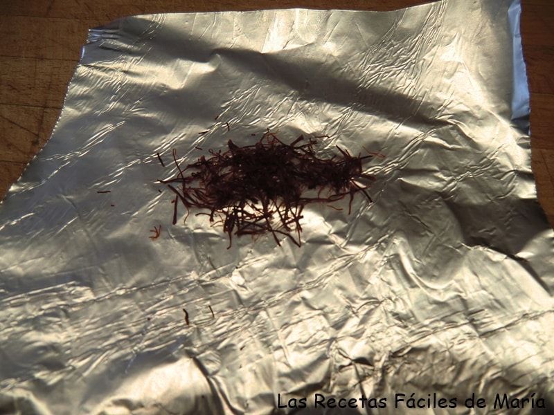 10.- Para tostar el azafrán lo pones en un papel de aluminio y con un mechero de cocina lo tuestas durante 1 minuto por ambos lados. ( lo tienes en el vídeo)